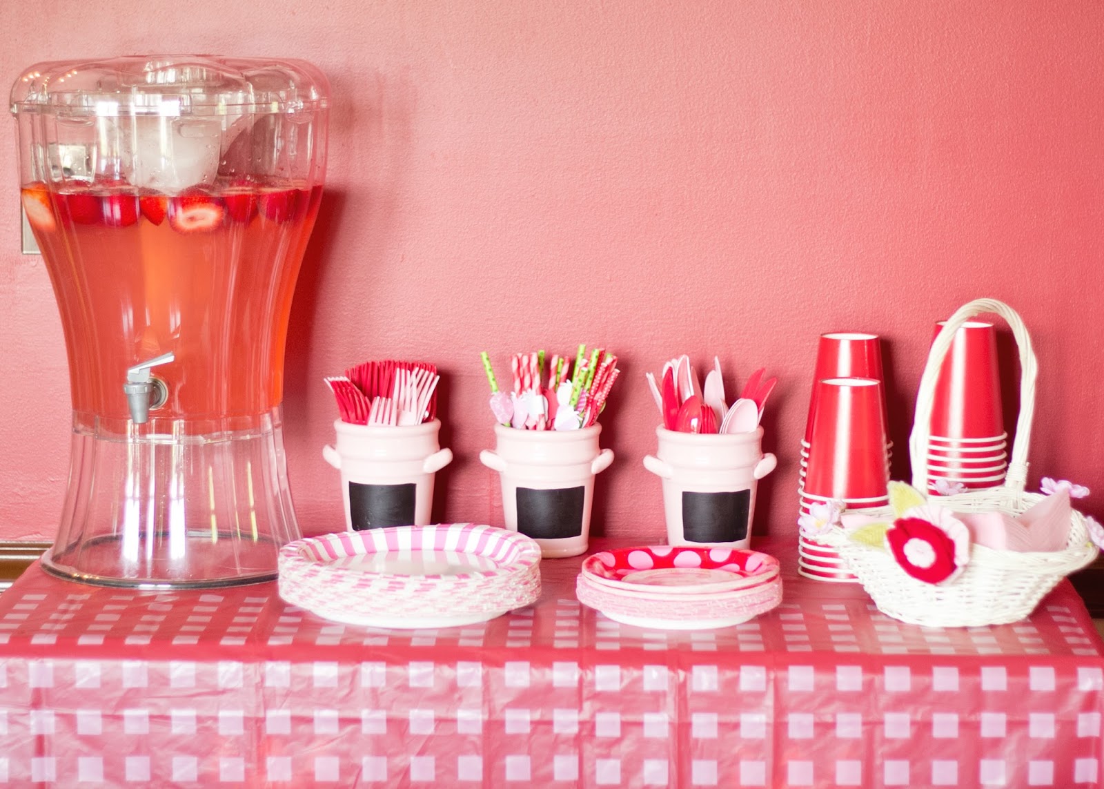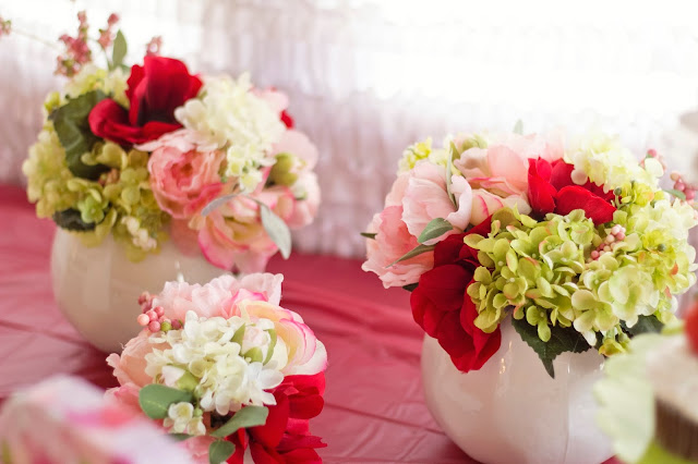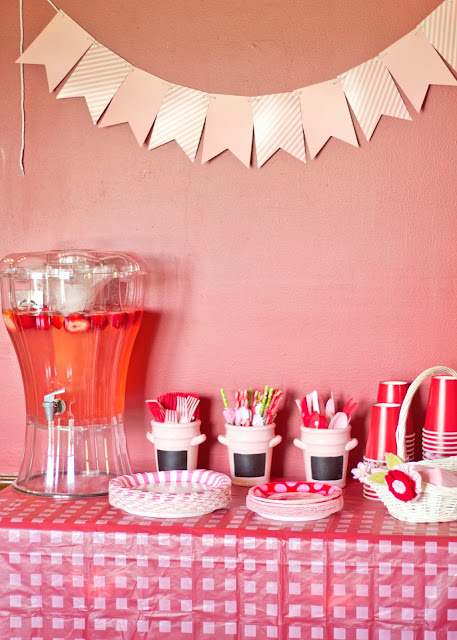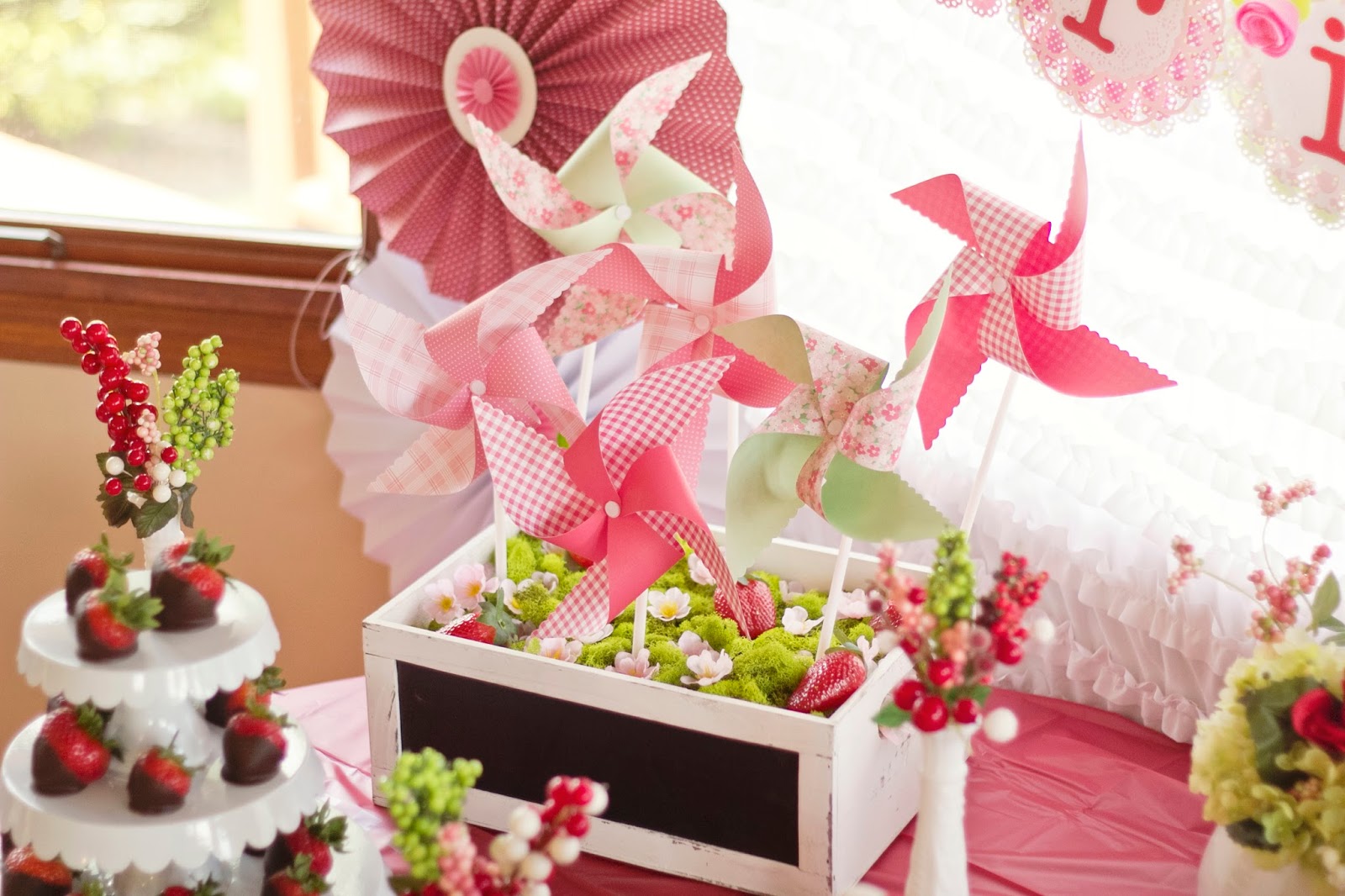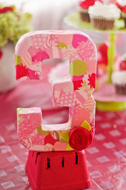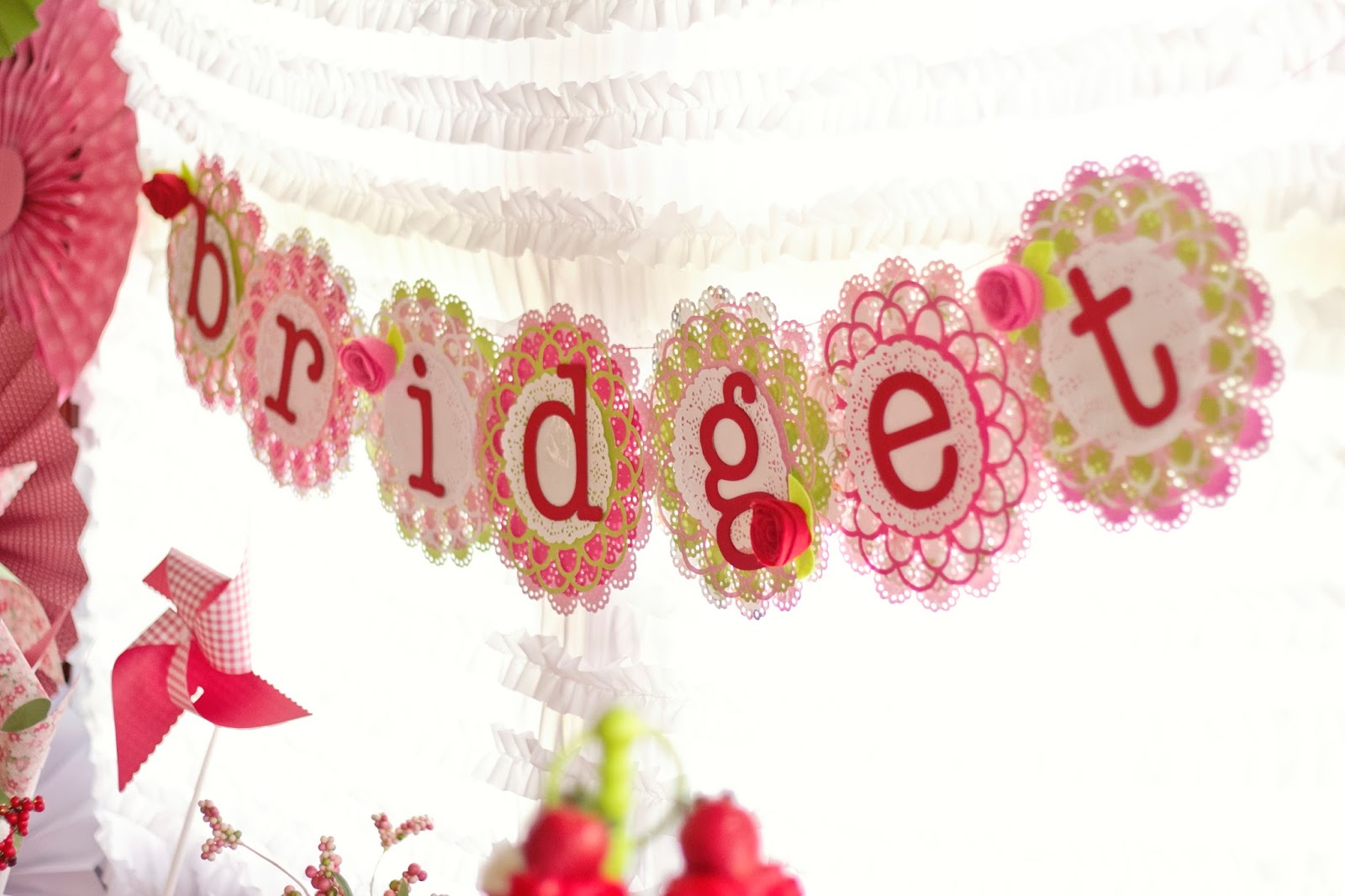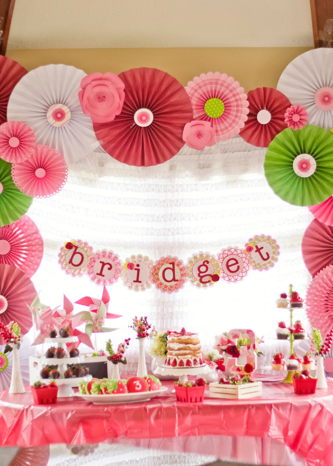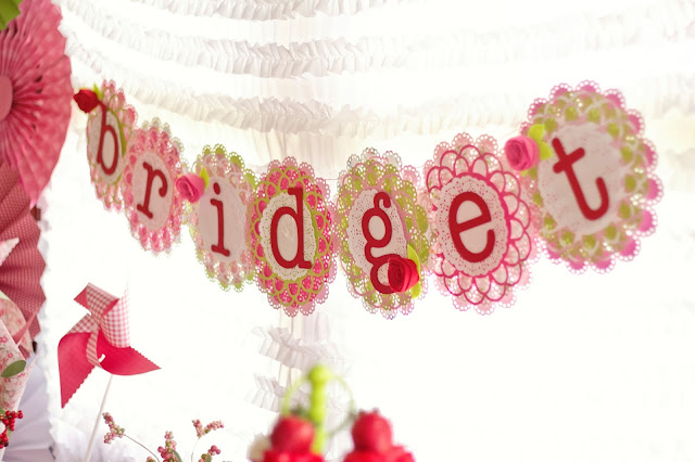 I'm finally getting around to posting B's 3rd birthday party. It turned out great and she had a blast. I wasn't planning on doing a big party this year but I just couldn't help myself. I picked the theme around Christmas and the timing was perfect. I was able to get Christmas clearance for 70% and since the colors for Strawberry Shortcake are red, green and pink, it worked perfectly. I bought lots of pinwheels in red and green and just added pink ones later one. Saved tons of money that way.