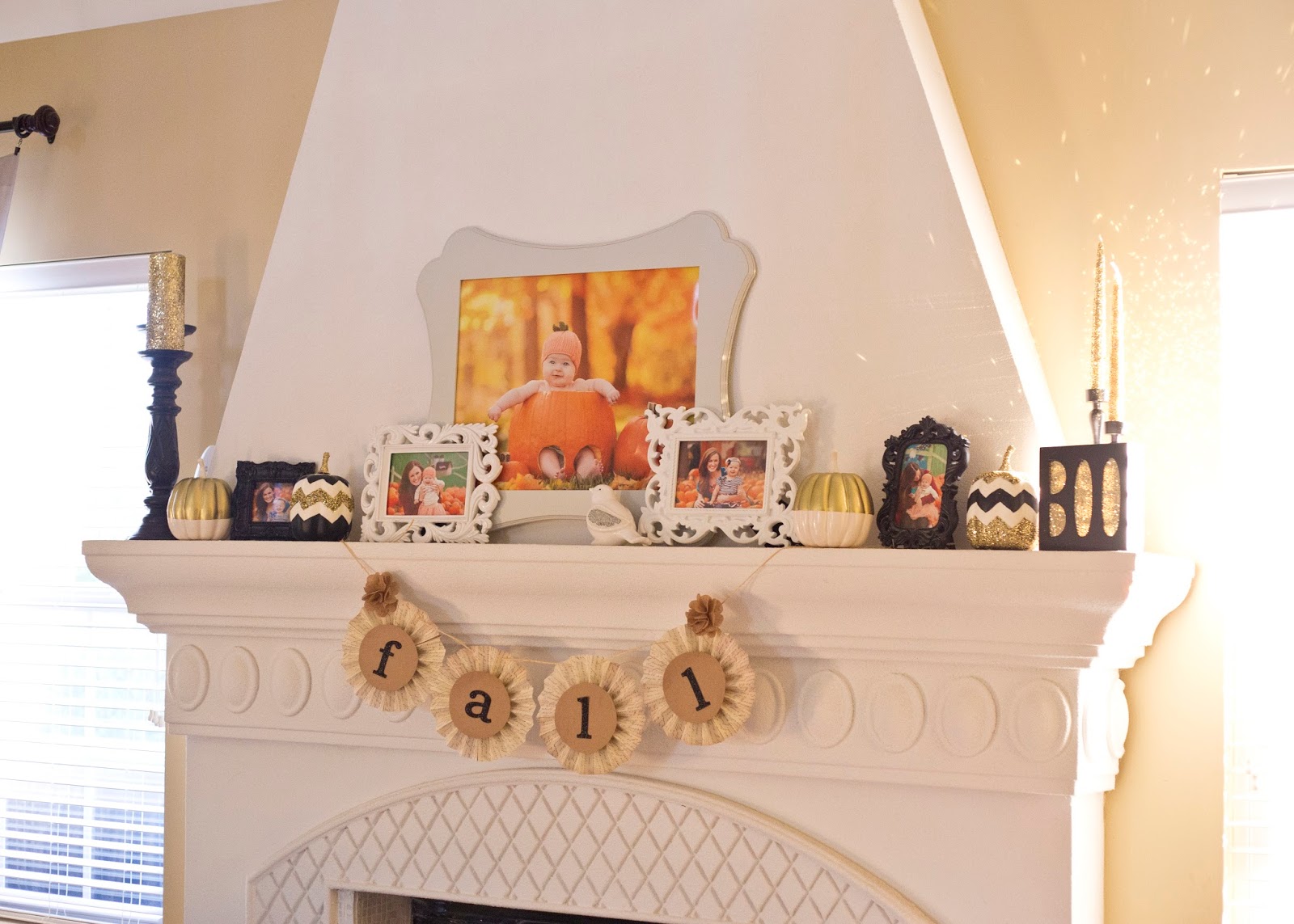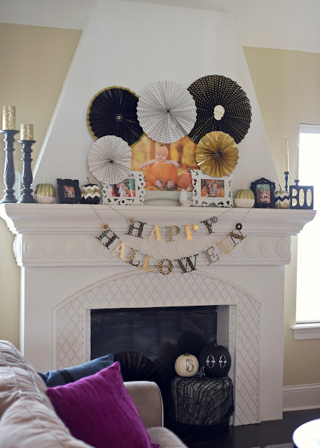 Fall is my favorite time of year! And I love decorating my mantel so of course I had to change it up for fall and Halloween. First I did a fall set up but I couldn't wait until October 1st to add my Halloween decor. I found some pumpkins at Target's one spot and added a little something to spruce it up a bit. Super easy!