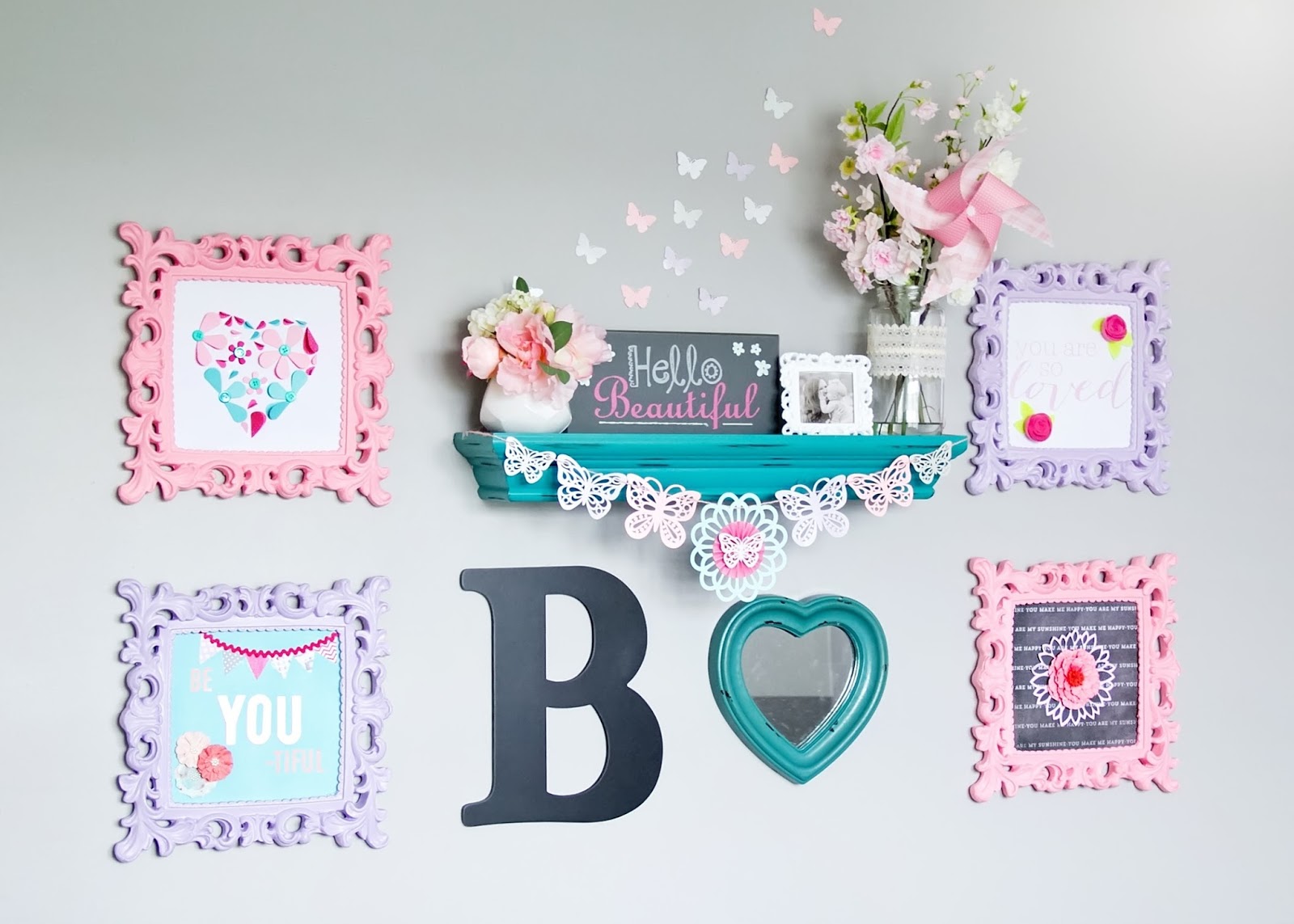 This project took a little longer than I expected but I'm so happy with the result. I couldn't find any bedding that I loved enough for my daughters room. I didn't want to paint and I wanted to keep her black furniture from her nursery, along with some wall hangings and lamps so I needed to find something that incorporated all those colors. I found one option but it was unavailable so I decided if I can't find what I want, I'm just going to make it. B had this Matilda Jane Platinum top that I fell in love with and it dawned on me that I should try and use that as inspiration for her room. So using her top inspiration I decorated a floral and girly room for my daughter. I added a lot of little personal touches and ended up doing a lot of DIY projects. Scanning the aisles of Micheal's can sometimes be a dangerous thing ;)